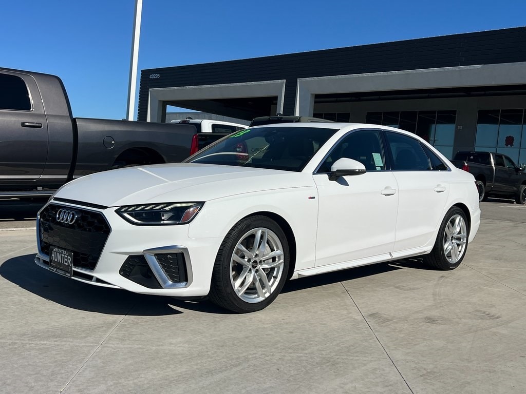 Priced below KBB Fair Purchase Price! 24/32 City/Highway MPG White 2023 Audi A4 45 S line Premium Plus quattro quattro 7-Speed Automatic S tronic 2.0L TFSI 7-Speed Automatic S tronic, quattro, Black Leather, 10 Speakers, 4-Wheel Disc Brakes, ABS brakes, Air Conditioning, Alloy wheels, AM/FM radio, Anti-whiplash front head restraints, Audi smartphone interface (Apple CarPlay/Android Auto), Auto High-beam Headlights, Auto-dimming Rear-View mirror, Automatic temperature control, Brake assist, Bumpers: body-color, Compass, Delay-off headlights, Driver door bin, Driver vanity mirror, Dual front impact airbags, Dual front side impact airbags, Electronic Stability Control, Emergency communication system: Audi connect CARE, Exterior Parking Camera Rear, Four wheel independent suspension, Front anti-roll bar, Front Bucket Seats, Front Center Armrest, Front dual zone A/C, Front fog lights, Front reading lights, Garage door transmitter: HomeLink, Genuine wood dashboard insert, Genuine wood door panel insert, Heated door mirrors, Heated front seats, Heated Front Sport Bucket Seats, Illuminated entry, Knee airbag, Leather Seating Surfaces, Leather Shift Knob, Leather steering wheel, Low tire pressure warning, Occupant sensing airbag, Outside temperature display, Overhead airbag, Overhead console, Panic alarm, Passenger door bin, Passenger vanity mirror, Power door mirrors, Power driver seat, Power moonroof, Power passenger seat, Power steering, Power windows, Radio data system, Radio: Audi Sound System, Rain sensing wipers, Rear air conditioning, Rear anti-roll bar, Rear reading lights, Rear seat center armrest, Rear window defroster, Remote keyless entry, Speed control, Speed-sensing steering, Speed-Sensitive Wipers, Split folding rear seat, Steering wheel mounted audio controls, Tachometer, Telescoping steering wheel, Tilt steering wheel, Traction control, Trip computer, Turn signal indicator mirrors, Variably intermittent wipers, Wheels: 18" 5-Double-Spoke Design, 7-Speed Automatic S tronic, quattro, Black Leather. Clean CARFAX.