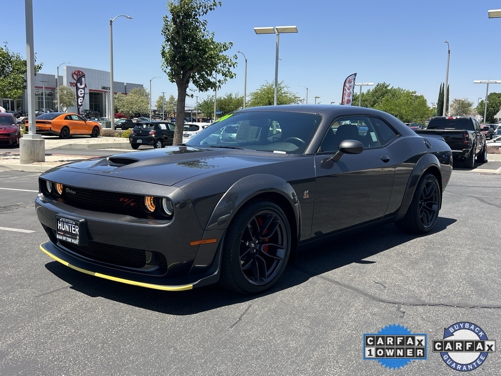 CARFAX One-Owner. Priced below KBB Fair Purchase Price! Odometer is 25211 miles below market average! Granite Crystal Metallic Clearcoat 2020 Dodge Challenger R/T Scat Pack Widebody RWD Tremec 6-Speed Manual SRT HEMI 6.4L V8 1-Yr SiriusXM Guardian Trial, 230MM Rear Axle, 4-Wheel Disc Brakes, 4G LTE Wi-Fi Hot Spot, 6 Speakers, 8.4" Touchscreen Display, ABS brakes, Adaptive Damping Suspension, Air Conditioning, Alloy wheels, AM/FM radio: SiriusXM, Anti-whiplash front head restraints, Apple CarPlay, Apple CarPlay/Android Auto, Auto-dimming Rear-View mirror, Automatic temperature control, Black Fuel Filler Door, Black Grille w/Bezel, Brake assist, Brembo 6-Pot Fixed Front Caliper Brakes, Bumpers: body-color, Compass, Delay-off headlights, Driver door bin, Driver vanity mirror, Dual front impact airbags, Dual front side impact airbags, Electronic Stability Control, Emergency communication system: SiriusXM Guardian, For Details, Visit DriveUconnect.com, Four wheel independent suspension, Front anti-roll bar, Front Bucket Seats, Front Center Armrest, Front dual zone A/C, Front fog lights, Front License Plate Bracket, Front reading lights, Fully automatic headlights, Garage door transmitter, Google Android Auto, GPS Antenna Input, HD Radio, Heated door mirrors, Heated front seats, Heated steering wheel, Illuminated entry, Integrated Center Stack Radio, Integrated Voice Command w/Bluetooth, Leather Flat-Bottom Steering Wheel, Leather Shift Knob, Low tire pressure warning, Media Hub (2 USB, AUX), Outside temperature display, Overhead airbag, Overhead console, Panic alarm, ParkView Rear Back-Up Camera, Passenger door bin, Passenger vanity mirror, Performance Shift Indicator, Power door mirrors, Power driver seat, Power steering, Power windows, Quick Order Package 23N R/T Scat Pack Widebody, Radio data system, Radio: Uconnect 4C w/8.4" Display, Rear anti-roll bar, Rear reading lights, Rear seat center armrest, Rear window defroster, Red Brake Calipers, Remote keyless entry, Rhombi 2-Pc Wheel Center Cap, Scat Pack Logo Houndstooth Seat, Security system, SiriusXM Satellite Radio, Speed control, Speed-sensing steering, Split folding rear seat, Spoiler, Sport steering wheel, Steering wheel mounted audio controls, Tachometer, Telescoping steering wheel, Tilt steering wheel, Traction control, Trip computer, USB Host Flip, Variably intermittent wipers, Wheels: 20" x 11.0" Devil's Rim Aluminum, Wheels: 20" x 9" Lo Gloss Granite Crystal, Widebody Competition Suspension, Widebody Fender Flares. Clean CARFAX.