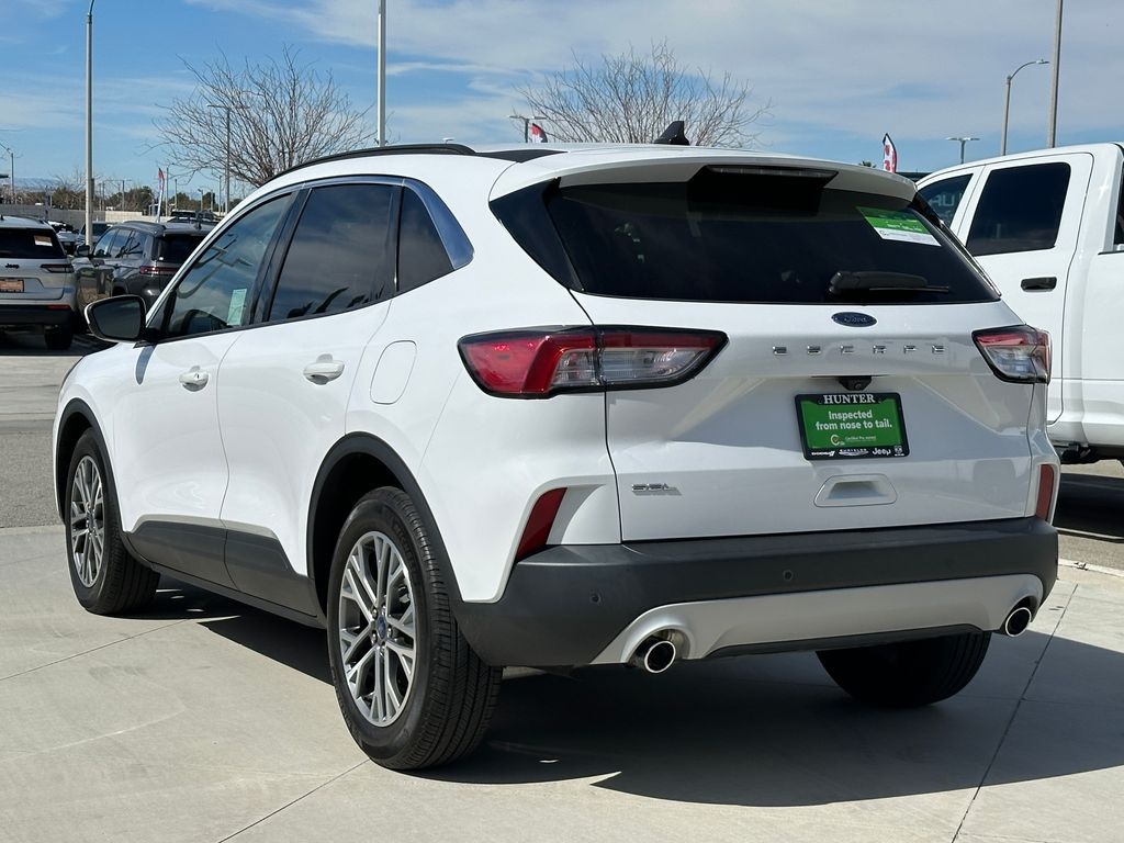 CARFAX One-Owner. Odometer is 1563 miles below market average! 28/34 City/Highway MPG Oxford White 2022 Ford Escape SEL FWD 8-Speed Automatic 1.5L EcoBoost 18" Machined-Face Aluminum Wheels, 3.81 Axle Ratio, 4-Wheel Disc Brakes, 4G LTE Wi-Fi Hotspot Removal, 6 Speakers, ABS brakes, Air Conditioning, Alloy wheels, AM/FM radio: SiriusXM, AM/FM Stereo, Auto High-beam Headlights, Automatic temperature control, Black Roof Rack Rails, Brake assist, Bumpers: body-color, Compass, Delay-off headlights, Driver door bin, Driver vanity mirror, Dual front impact airbags, Dual front side impact airbags, Electronic Stability Control, Emergency communication system: SYNC 3 911 Assist, Equipment Group 301A, Exterior Parking Camera Rear, Ford Co-Pilot360 Assist+, FordPass Connect, Four wheel independent suspension, Front anti-roll bar, Front Bucket Seats, Front Center Armrest, Front dual zone A/C, Front fog lights, Front reading lights, Fully automatic headlights, Heated ActiveX Trimmed Front Sport Contour Bucket Seats, Heated door mirrors, Heated front seats, Heated steering wheel, Illuminated entry, Instrument Panel w/6.5" Digital Screen, Intelligent Adaptive Cruise Control w/Stop-and-Go, Knee airbag, Low tire pressure warning, Occupant sensing airbag, Outside temperature display, Overhead airbag, Overhead console, Panic alarm, Passenger door bin, Passenger vanity mirror, Power door mirrors, Power driver seat, Power Liftgate, Power steering, Power windows, Radio data system, Rear anti-roll bar, Rear reading lights, Rear seat center armrest, Rear window defroster, Rear window wiper, Remote keyless entry, Speed control, Speed Sign Recognition, Speed-sensing steering, Speed-Sensitive Wipers, Split folding rear seat, Spoiler, Steering wheel mounted audio controls, SYNC 3 Communications & Entertainment System, Tachometer, Telescoping steering wheel, Tilt steering wheel, Traction control, Trip computer, Variably intermittent wipers, Voice-Activated Touchscreen Navigation System.
