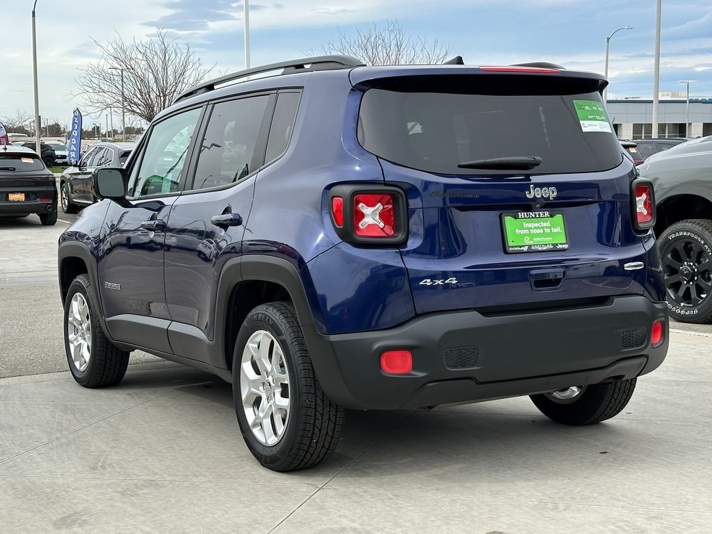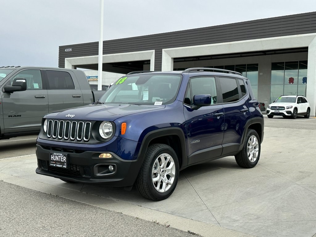 Odometer is 623 miles below market average! 21/29 City/Highway MPG Jetset Blue 2018 Jeep Renegade Latitude 4WD 9-Speed 948TE Automatic 2.4L I4 16" x 6.5" Aluminum Wheels, 17" x 7.0" Aluminum Wheels, 4-Wheel Disc Brakes, 6 Speakers, ABS brakes, Air Conditioning, All-Season Floor Mats, Alloy wheels, AM/FM radio: SiriusXM, Anti-whiplash front head restraints, Apple CarPlay/Android Auto, Automatic temperature control, Brake assist, Cold Weather Group, Compass, Delay-off headlights, Driver door bin, Driver vanity mirror, Dual front impact airbags, Dual front side impact airbags, Electronic Stability Control, Four wheel independent suspension, Front anti-roll bar, Front Bucket Seats, Front Center Armrest, Front dual zone A/C, Front fog lights, Front reading lights, Fully automatic headlights, Heated door mirrors, Heated Front Seats, Heated Steering Wheel, Illuminated entry, Knee airbag, Leather steering wheel, Low tire pressure warning, Normal Duty Suspension, Occupant sensing airbag, Outside temperature display, Overhead airbag, Overhead console, Panic alarm, ParkView Rear Back-Up Camera, Passenger door bin, Passenger vanity mirror, Passive Entry Remote Start Package, Passive Entry/Keyless Go, Power door mirrors, Power steering, Power windows, Premium Cloth Bucket Seats, PTC Auxiliary Interior Heater, Quick Order Package 21J, Quick Order Package 2EJ, Radio data system, Radio: Uconnect 4 w/7" Display, Rear anti-roll bar, Rear window defroster, Rear window wiper, Remote keyless entry, Roof rack: rails only, Speed control, Split folding rear seat, Spoiler, Steering wheel mounted audio controls, Tachometer, Telescoping steering wheel, Tilt steering wheel, Traction control, Trip computer, Variably intermittent wipers, Voltmeter, Windshield Wiper De-Icer. Clean CARFAX.