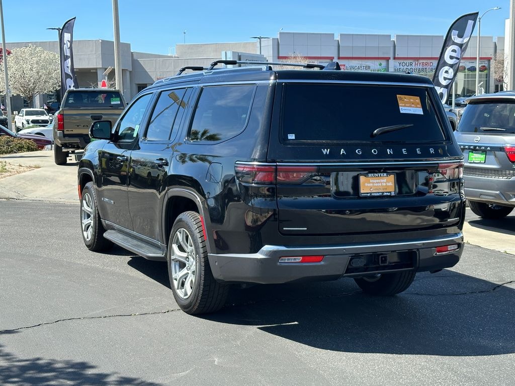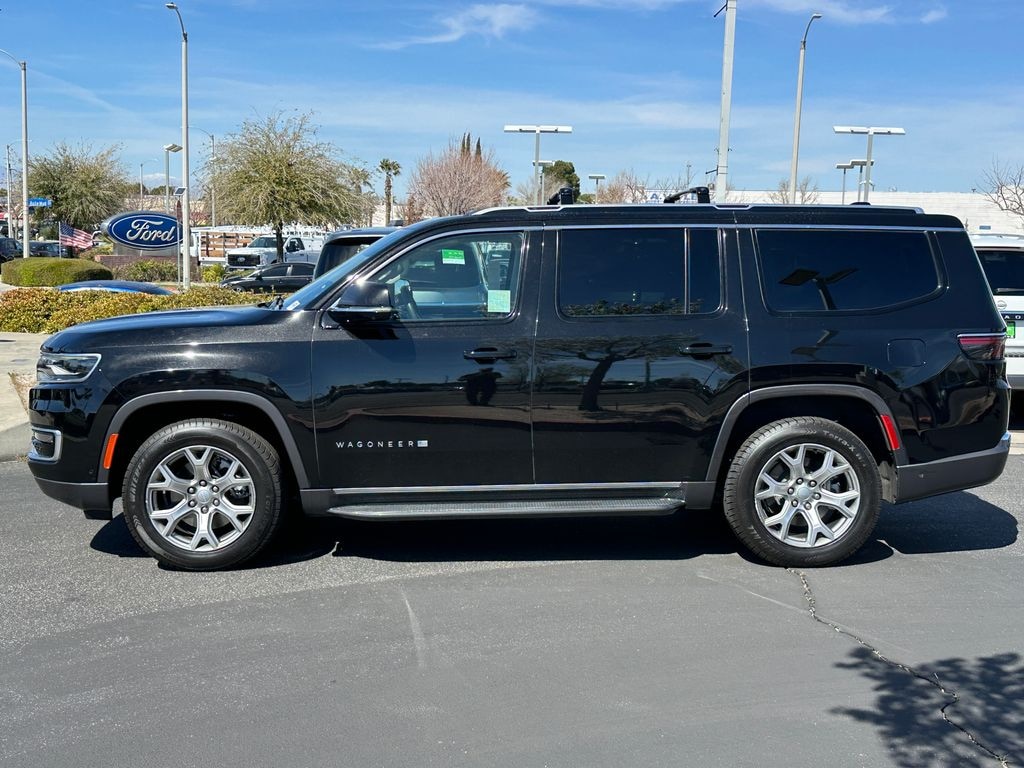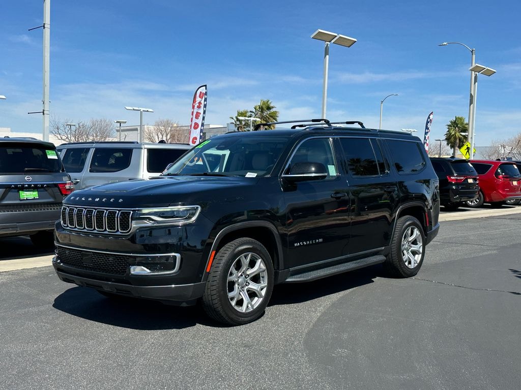 CARFAX One-Owner. Diamond Black Crystal Pearlcoat 2022 Jeep Wagoneer Series I 4WD 8-Speed Automatic 5.7L V8 FCA US LLC Certified Pre-Owned Certified, 10 Speakers, 2nd Row Manual Window Shades, 3 Panel Sunroof, 3.21 Rear Axle Ratio, 3rd row seats: bench, 4-Wheel Disc Brakes, ABS brakes, Active Lane Management System, Adaptive Cruise Control w/Stop & Go, Adjustable pedals, Adjustable Roof Rail Crossbars, Air Conditioning, Alloy wheels, AM/FM radio: SiriusXM with 360L, Anti-whiplash front head restraints, Audio memory, Auto High Beam Headlamp Control, Auto-dimming door mirrors, Auto-dimming Rear-View mirror, Auto-leveling suspension, Automatic temperature control, Brake assist, Bridgestone Brand Tires, Bumpers: body-color, Cargo Cover, Compass, Convenience Group I, Delay-off headlights, Driver door bin, Driver vanity mirror, Driver's Seat Mounted Armrest, Dual front impact airbags, Dual front side impact airbags, Electronic Stability Control, Exterior Parking Camera Rear, Four wheel independent suspension, Front anti-roll bar, Front Bucket Seats, Front Center Armrest w/Storage, Front dual zone A/C, Front fog lights, Front reading lights, Fully automatic headlights, Garage door transmitter, Heated door mirrors, Heated front seats, Heated Second Row Seats, Heated steering wheel, Illuminated entry, Knee airbag, Leather Trimmed Bucket Seats, Low tire pressure warning, Memory seat, Memory Steering Column, Navigation System, Normal Duty Suspension, Occupant sensing airbag, Outside temperature display, Overhead airbag, Overhead console, P&P Park & Unpark Assist w/Stop System, Panic alarm, Passenger door bin, Passenger seat mounted armrest, Passenger vanity mirror, Pedal memory, Power adjustable front head restraints, Power door mirrors, Power driver seat, Power Liftgate, Power passenger seat, Power steering, Power windows, Premium Group I (DISC), Quick Order Package 22E, Radio data system, Radio: Uconnect 5 Nav w/10.1" Display, Rain Sensitive Windshield Wipers, Rear air conditioning, Rear anti-roll bar, Rear dual zone A/C, Rear reading lights, Rear seat center armrest, Rear window defroster, Rear window wiper, Reclining 3rd row seat, Remote keyless entry, Reversible Carpet/Vinyl Cargo Mat, Security system, Speed control, Speed-sensing steering, Speed-Sensitive Wipers, Split folding rear seat, Steering wheel memory, Steering wheel mounted audio controls, Surround View Camera System, Tachometer, Telescoping steering wheel, Tilt steering wheel, Traction control, Trip computer, Turn signal indicator mirrors, Variably intermittent wipers, Ventilated front seats, Voltmeter, Wheels: 18" x 8.0" Aluminum Base Finish, Wheels: 20" x 9.0" Aluminum Base Finish (DISC), Wireless Charging Pad.