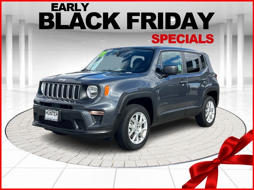 Recent Arrival! CARFAX One-Owner. 23/29 City/Highway MPG Graphite Gray 2023 Jeep Renegade Latitude 4WD 9-Speed 948TE Automatic 1.3L I4 17" x 7.0" Aluminum Wheels, 3.734 Final Drive Ratio, 4-Wheel Disc Brakes, 6 Speakers, ABS brakes, Air Conditioning, Alloy wheels, AM/FM radio: SiriusXM, Anti-whiplash front head restraints, Apple CarPlay/Android Auto, Automatic temperature control, Brake assist, Cloth Bucket Seats, Compass, Delay-off headlights, Driver door bin, Driver vanity mirror, Dual front impact airbags, Dual front side impact airbags, Electronic Stability Control, Emergency communication system: SiriusXM Guardian, Four wheel independent suspension, Front anti-roll bar, Front Bucket Seats, Front Center Armrest, Front dual zone A/C, Front reading lights, Heated door mirrors, Illuminated entry, Knee airbag, Low tire pressure warning, Navigation System, Normal Duty Suspension, Occupant sensing airbag, Outside temperature display, Overhead airbag, ParkView Rear Back-Up Camera, Passenger door bin, Passenger vanity mirror, Power door mirrors, Power steering, Power windows, Quick Order Package 22B, Radio data system, Radio: Uconnect 4C Nav w/8.4" Display, Rear anti-roll bar, Rear window defroster, Rear window wiper, Remote keyless entry, Roof rack: rails only, Security system, Speed control, Split folding rear seat, Spoiler, Steering wheel mounted audio controls, Tachometer, Telescoping steering wheel, Tilt steering wheel, Traction control, Trip computer, Variably intermittent wipers, Voltmeter.