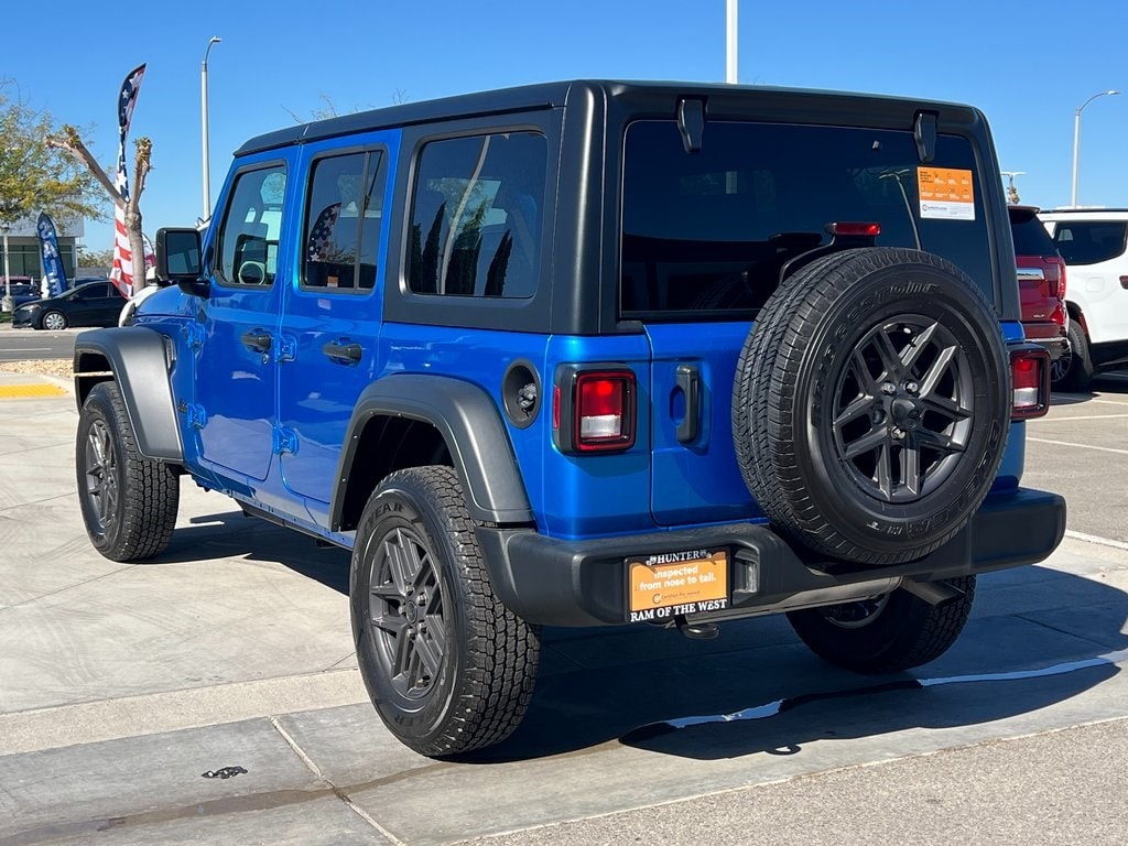 CARFAX One-Owner. Hydro Blue Pearl Coat 2024 Jeep Wrangler Sport S 4WD 8-Speed Automatic 2.0L I4 DOHC 110 MPH Vehicle Max Speed Calibration, 3.45 Overall Top Gear Ratio, 4-Wheel Disc Brakes, 8 Speakers, ABS brakes, Advanced Brake Assist, Air Conditioning, AM/FM radio, Apple CarPlay/Android Auto, Automatic Headlamps, Aux Battery, Black 3-Piece Hard Top, Brake assist, Cloth Low-Back Bucket Seats, Compass, Corning Gorilla Glass, Deep Tint Sunscreen Windows, Delay-off headlights, Driver door bin, Driver vanity mirror, Dual front impact airbags, Dual front side impact airbags, Electronic Stability Control, Enhanced Adaptive Cruise Control, Freedom Panel Storage Bag, Front 1-Touch Down Power Windows, Front anti-roll bar, Front Bucket Seats, Front Center Armrest w/Storage, Front fog lights, Front reading lights, Full Speed Forward Collision Warning Plus, Integrated roll-over protection, Low tire pressure warning, No Soft Top, Non-Lock Fuel Cap w/o Discriminator, Normal Duty Suspension, Occupant sensing airbag, Outside temperature display, Overhead airbag, ParkView Rear Back-Up Camera, Passenger door bin, Passenger vanity mirror, Power Heated Mirrors, Power steering, Premium Wrapped Steering Wheel, Quick Order Package 22S Sport S, Radio data system, Radio: Uconnect 5 w/12.3" Display, Rear anti-roll bar, Rear reading lights, Rear Window Defroster, Rear Window Wiper/Washer, Remote Keyless Entry, Security Alarm, Speed control, Speed Sensitive Power Locks, Split folding rear seat, Sport S, Steering wheel mounted audio controls, Stop-Start Dual Battery System, Sun Visors w/Illuminated Vanity Mirrors, Tachometer, Telescoping steering wheel, Tilt steering wheel, Traction control, Trip computer, Variably intermittent wipers, Wheels: 17" x 7.5" Black Steel Styled, Wheels: 17" x 7.5" Gray. Clean CARFAX.
