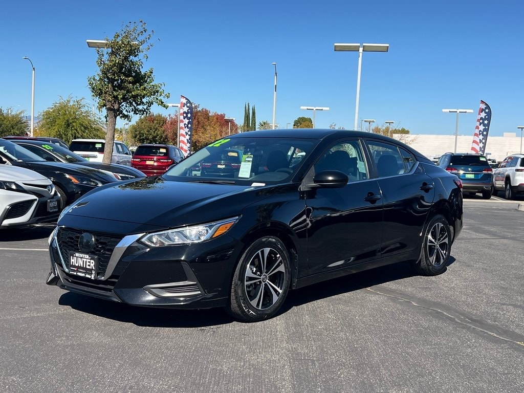 CARFAX One-Owner. 29/39 City/Highway MPG Super Black 2022 Nissan Sentra SV FWD CVT with Xtronic 2.0L DOHC CVT with Xtronic, Black Cloth, 16" Alloy Wheels, 4-Wheel Disc Brakes, 6 Speakers, ABS brakes, Air Conditioning, Alloy wheels, AM/FM radio: SiriusXM, Auto High-beam Headlights, Blind Spot Warning, Brake assist, Bumpers: body-color, Carpeted Floor Mats w/Trunk Mat, Delay-off headlights, Driver door bin, Driver vanity mirror, Dual front impact airbags, Dual front side impact airbags, Electronic Stability Control, Four wheel independent suspension, Front anti-roll bar, Front Bucket Seats, Front Center Armrest, Front reading lights, Fully automatic headlights, Heated door mirrors, Illuminated entry, Knee airbag, Low tire pressure warning, NissanConnect featuring Apple CarPlay and Android Auto, Occupant sensing airbag, Outside temperature display, Overhead airbag, Overhead console, Panic alarm, Passenger door bin, Passenger vanity mirror, Power door mirrors, Power steering, Power windows, Premium Cloth Seat Trim, Radio data system, Radio: AM/FM w/RDS/MP3/Aux-In, Rear anti-roll bar, Rear Parking Sensors, Rear seat center armrest, Rear side impact airbag, Rear window defroster, Remote keyless entry, Security system, Speed control, Speed-sensing steering, Split folding rear seat, Steering wheel mounted audio controls, Tachometer, Telescoping steering wheel, Tilt steering wheel, Traction control, Trip computer, Variably intermittent wipers, CVT with Xtronic, Black Cloth.