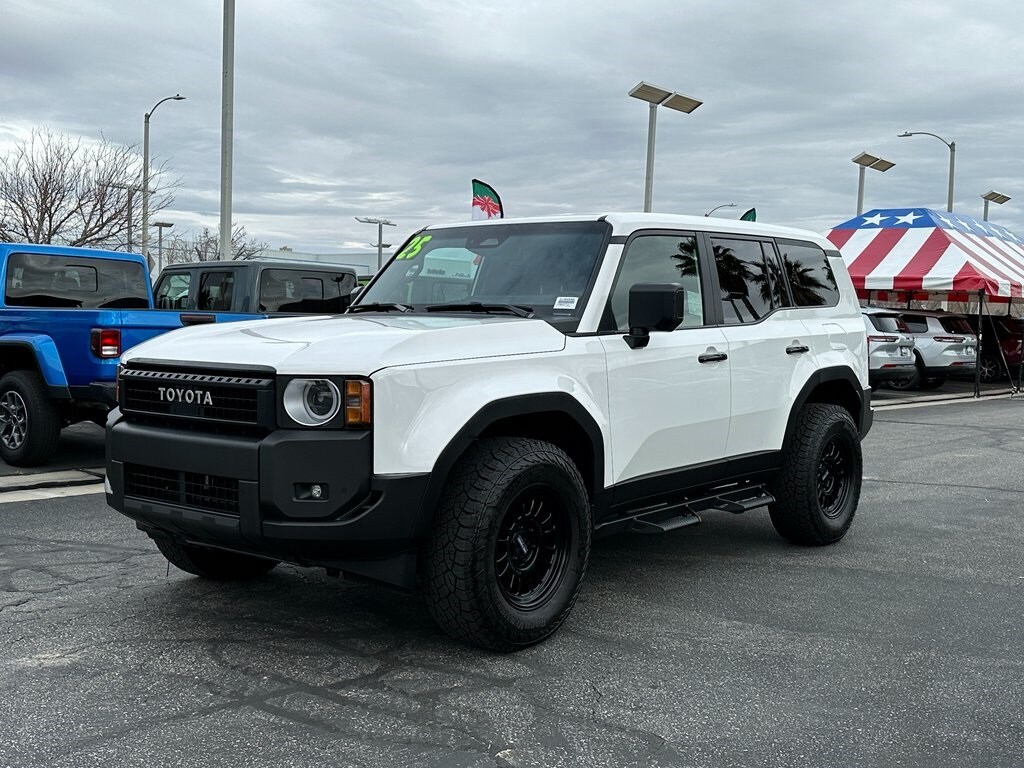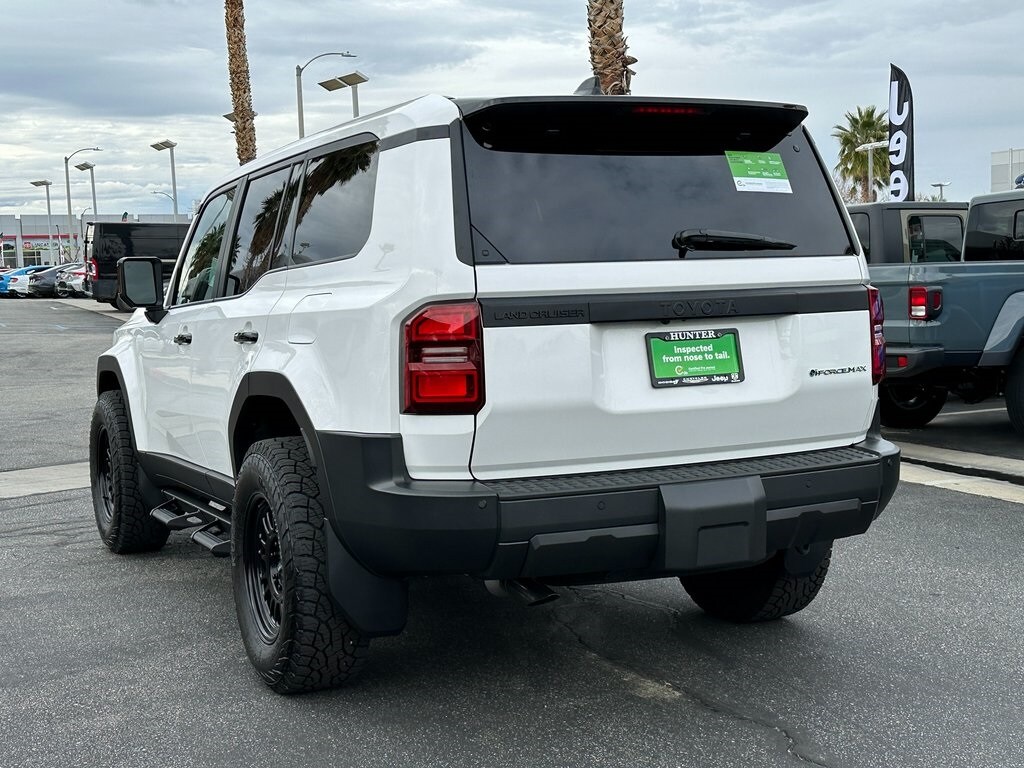 Recent Arrival! CARFAX One-Owner. Ice 2025 Toyota Land Cruiser 1958 4WD 8-Speed Automatic 2.4L 4-Cylinder 2.4L 4-Cylinder, Black Cloth, 4-Wheel Disc Brakes, 6 Speakers, ABS brakes, Air Conditioning, All Weather Cargo Mat (TMS), Alloy wheels, AM/FM radio: SiriusXM, Apple CarPlay/Android Auto, Auto High-beam Headlights, Auto-dimming Rear-View mirror, Automatic temperature control, Back Door Opening Guard, Brake assist, Compass, Delay-off headlights, Driver door bin, Driver vanity mirror, Dual front impact airbags, Dual front side impact airbags, Electronic Stability Control, Emergency communication system: Safety Connect (up to 10-year trial subscription), Exterior Parking Camera Rear, Fabric Seat Trim, Front anti-roll bar, Front Bucket Seats, Front Center Armrest, Front dual zone A/C, Front fog lights, Front reading lights, Front wheel independent suspension, Fully automatic headlights, Garage door transmitter: HomeLink, Heated Front Seats, Heated front seats, Heated steering wheel, Illuminated Door Sills (TMS), Knee airbag, Leather Shift Knob, Leather steering wheel, Low tire pressure warning, Occupant sensing airbag, Outside temperature display, Overhead airbag, Overhead console, Panic alarm, Passenger door bin, Passenger vanity mirror, Power door mirrors, Power steering, Power windows, Predator Drop Step (TMS), Radio data system, Radio: Toyota Audio Multimedia System, Rain sensing wipers, Rear air conditioning, Rear anti-roll bar, Rear Bumper Guard, Rear reading lights, Rear seat center armrest, Rear window defroster, Rear window wiper, Remote keyless entry, Security system, Speed control, Speed-sensing steering, Split folding rear seat, Spoiler, Steering wheel mounted audio controls, Telescoping steering wheel, Tilt steering wheel, Traction control, Trip computer, Turn signal indicator mirrors, Variably intermittent wipers, Wheels: 18" x 7J Dark Gray Metallic Alloy, 2.4L 4-Cylinder, Black Cloth. Clean CARFAX.