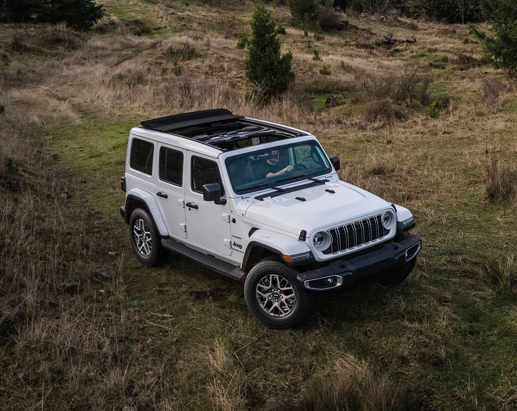 The Jeep Wrangler features the Rock-Trac 4x4 system, offering a 4:1 low-gear ratio for precise control on steep and rugged trails. With ground clearance reaching up to 12.9 inches and an approach angle of 47.4 degrees, the Jeep Wrangler excels over rocks and obstacles, while impressive water-fording abilities instill confidence over slick, unpredictable terrain.