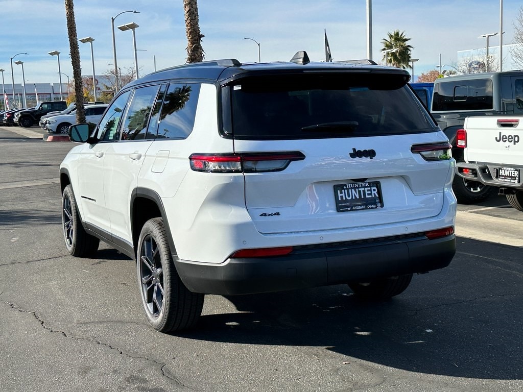 Bright White Clearcoat 2025 Jeep Grand Cherokee L Limited 4WD 8-Speed Automatic 3.6L V6 24V VVT 3.45 Rear Axle Ratio, 3rd row seats: split-bench, 4-Wheel Disc Brakes, 6 Speakers, ABS brakes, Active Noise Control System, Air Conditioning, Alloy wheels, AM/FM radio: SiriusXM with 360L, Anti-whiplash front head restraints, Audio memory, Auto High-beam Headlights, Automatic temperature control, Black Painted Roof, Blackout Model, Brake assist, Bumpers: body-color, Capri Leatherette Seats, Compass, Delay-off headlights, Delete Limited Badge, Driver door bin, Driver vanity mirror, Dual front impact airbags, Dual front side impact airbags, Dual-Pane Panoramic Sunroof, Electronic Stability Control, Emergency communication system, Four wheel independent suspension, Front anti-roll bar, Front Bucket Seats, Front Center Armrest w/Storage, Front dual zone A/C, Front fog lights, Front License Plate Bracket, Front reading lights, Fully automatic headlights, Garage door transmitter, Gloss Black Exterior Accents, Heated door mirrors, Heated front seats, Heated rear seats, Heated steering wheel, Illuminated entry, Interior Rear Facing Camera, Knee airbag, Low tire pressure warning, Manual Fold Seatbacks, Memory seat, Model Year Tracking, Navigation System, Normal Duty Suspension, Occupant sensing airbag, Outside temperature display, Overhead airbag, Overhead console, Panic alarm, ParkView Rear Back-Up Camera, Passenger door bin, Passenger vanity mirror, Power door mirrors, Power driver seat, Power Liftgate, Power passenger seat, Power steering, Power windows, Quick Order Package 22E, Radio data system, Radio: Uconnect 5 Nav with 10.1" Display, Rear air conditioning, Rear anti-roll bar, Rear reading lights, Rear window defroster, Rear window wiper, Reclining 3rd row seat, Remote keyless entry, Security system, Speed control, Speed-Sensitive Wipers, Split folding rear seat, Spoiler, Steering wheel mounted audio controls, Tachometer, Telescoping steering wheel, Tilt steering wheel, Traction control, Trip computer, Turn signal indicator mirrors, Variably intermittent wipers, Voltmeter, Wheels: 18" x 8.0" Polished/Painted Aluminum, Wheels: 20" x 8.5" Black Painted Aluminum.