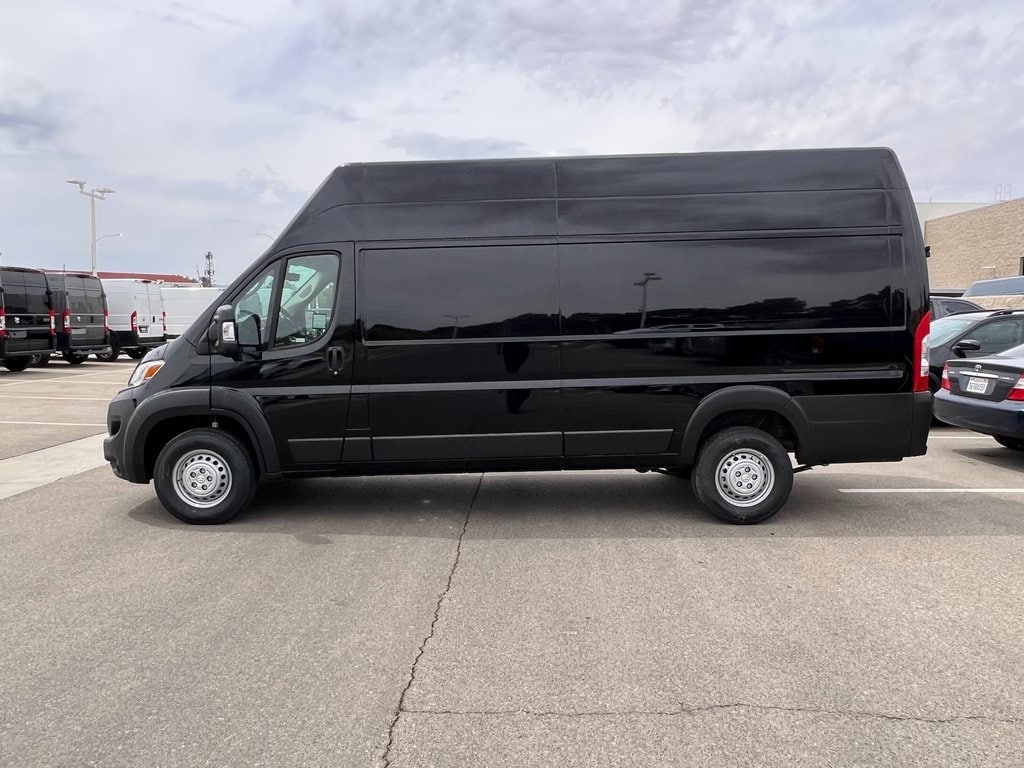 Black Clearcoat 2025 Ram ProMaster 3500 Super High Roof FWD 9-Speed 948TE Automatic 3.6L V6 24V VVT 4 Speakers, 4-Way Manual Adjust Front Passenger Seat, 4-Wheel Disc Brakes, 4.08 Axle Ratio, 4G LTE Wi-Fi Hotspot, ABS brakes, Adaptive Cruise Control w/Stop & Go, Air Conditioning, AM/FM radio: SiriusXM, Apple CarPlay, Apple CarPlay/Android Auto, Black/Gray Seats, Blind Spot & Cross Path Detection, Bodyside moldings, Brake assist, Cloth Bucket Seats, Connectivity - US/Canada, Digital Rearview Mirror w/Autodim, Driver door bin, Driver Seat Armrest, Driver's Seat Mounted Armrest, Electronic Stability Control, Exterior Mirrors w/Supplemental Signals, For Details, Visit DriveUconnect.com, For More Info, Call 800-643-2112, Front anti-roll bar, Front Bucket Seats, Front License Plate Bracket, Front reading lights, Front wheel independent suspension, Global Telematics Box Module (TBM), Google Android Auto, GPS Antenna Input, Heavy Duty Suspension, Illuminated entry, Intelligent Speed Assist (ISA), Lane Departure Warning Plus, Low tire pressure warning, Manufacturer's Statement of Origin, Outside temperature display, Overhead airbag, Overhead console, ParkSense Front/Rear Park Assist System, ParkView Rear Back-Up Camera, Passenger Bucket Seat, Passenger door bin, Power steering, Power windows, Premium Heavy Duty Suspension, Quick Order Package 22B Tradesman w/Pass Seat, Radio: Uconnect 5 w/7" Display, Rear anti-roll bar, Rear Heavy Duty Stabilizer Bar, Remote keyless entry, Safety Group, SiriusXM Radio Service, Steering wheel mounted audio controls, Tachometer, Telescoping steering wheel, Traction control, Trip computer, Turn signal indicator mirrors, Variably intermittent wipers, Wheel Center Cap, Wheels: 16" x 6.0" Steel.