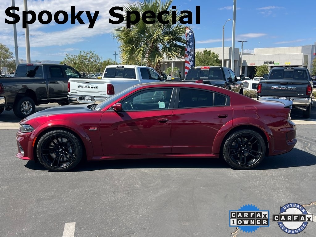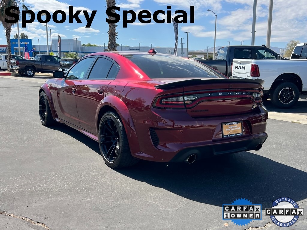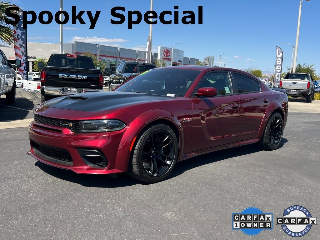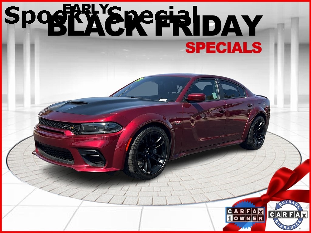 CARFAX One-Owner. Octane Red Pearlcoat 2022 Dodge Charger R/T Scat Pack Widebody RWD 8-Speed Automatic SRT HEMI 6.4L V8 MDS Black Artificial Leather, 1-Yr SiriusXM Guardian Trial, 19 harman/kardon GreenEdge Speakers, 2-Piece Shark Fin Antenna, 4-Wheel Disc Brakes, 4G LTE Wi-Fi Hot Spot, 5-Year SiriusXM Traffic Service, 5-Year SiriusXM Travel Link Service, 6 Speakers, 8.4" Touchscreen Display, ABS brakes, Adaptive Damping Suspension, Air Conditioning, All Speed Traction Control, Alloy wheels, AM/FM radio: SiriusXM, Anti-whiplash front head restraints, Apple CarPlay, Apple CarPlay/Android Auto, Auto Adjust In Reverse Exterior Mirrors, Auto-Dimming Exterior Driver Mirror, Auto-dimming Rear-View mirror, Automatic temperature control, Bi-Function HID Projector Head Lamps, Black-Edged Premium Floormats, Blind Spot & Cross Path Detection, Blind Spot Memory/Power/Heat Mirror, Body Color Exterior Mirrors, Body Color Fender Flares, Brake assist, Brembo 6-Pot Fixed Front Caliper Brakes, Bumpers: body-color, Cloth Performance Seats w/Heat, Compass, Delay-off headlights, Driver & Passenger Lower LED Lamps, Driver Convenience Group, Driver door bin, Driver vanity mirror, Dual front impact airbags, Dual front side impact airbags, Electronic Stability Control, Emergency communication system: SiriusXM Guardian, Exterior Mirrors Courtesy Lamps, Exterior Mirrors w/Heating Element, Flat-Bottom Steering Wheel, For Details, Visit DriveUconnect.com, Four wheel independent suspension, Front anti-roll bar, Front Bucket Seats, Front Center Armrest, Front dual zone A/C, Front fog lights, Front Overhead LED Lighting, Front reading lights, Fully automatic headlights, Garage door transmitter: HomeLink, Google Android Auto, GPS Antenna Input, GPS Navigation, harman/kardon Audio Group, harman/kardon GreenEdge Amp, HD Radio, Heated 2nd Row Seats, Heated door mirrors, Heated Front Seats, Heated front seats, Heated steering wheel, Illuminated entry, Illuminated Rear Cupholders, Integrated Center Stack Radio, Integrated Voice Command w/Bluetooth, Knee airbag, Leather Shift Knob, Low tire pressure warning, Media Hub (2 USB, AUX), Navigation & Travel Group, Occupant sensing airbag, Outside temperature display, Overhead airbag, Overhead console, Panic alarm, ParkView Rear Back-Up Camera, Passenger door bin, Passenger vanity mirror, Performance Shift Indicator, Plus Group, Power 2-Way Driver Lumbar Adjust, Power 2-Way Passenger Lumbar Adjust, Power door mirrors, Power driver seat, Power Front Driver/Passenger Seats, Power steering, Power Sunroof, Power Tilt/Telescope Steering Column, Power windows, Premium-Stitched Dash Panel, Quick Order Package 21V Scat Pack Widebody, Radio: Uconnect 4C Nav w/8.4" Display, Radio: Uconnect 4C w/8.4" Display, Radio/Driver Seat/Mirrors Memory, Rear anti-roll bar, Rear reading lights, Rear Seat Armrest w/Storage Cupholder, Rear seat center armrest, Rear window defroster, Remote keyless entry, Rhombi 2-Pc Wheel Center Cap, Satin Black Painted Hood, Scat Pack Logo Nappa/Alcantara Seat, Security system, SiriusXM Traffic Plus, SiriusXM Travel Link, Speed control, Speed-Sensitive Wipers, Split folding rear seat, Spoiler, Sport steering wheel, Steering wheel mounted audio controls, Surround Sound, Tachometer, Telescoping steering wheel, Tilt steering wheel, Traction control, Trip computer, USB Host Flip, Variably intermittent wipers, Ventilated Front Seats, Wheels: 20" x 11" Carbon Black Aluminum, Wheels: 20" x 9" Lo Gloss Granite Crystal, Widebody Competition Suspension, Widebody Package, Black Artificial Leather. Clean CARFAX.
