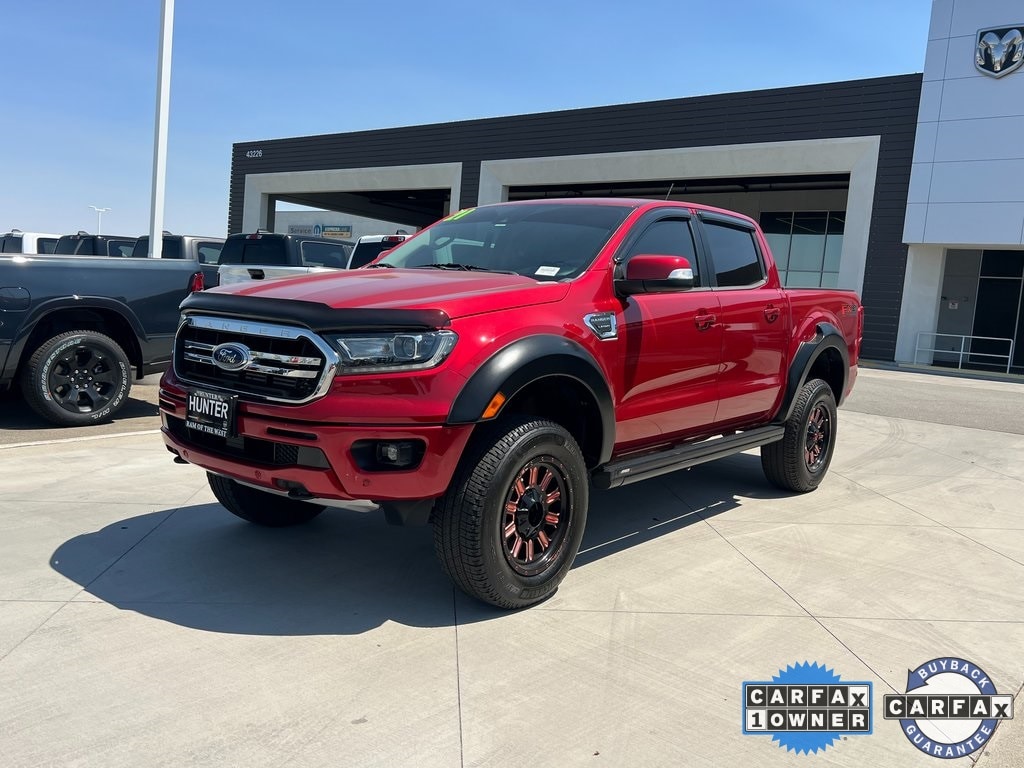 CARFAX One-Owner. Priced below KBB Fair Purchase Price! Odometer is 21991 miles below market average! Red Metallic 2021 Ford Ranger Lariat 4WD 10-Speed Automatic EcoBoost 2.3L I4 GTDi DOHC Turbocharged VCT 4WD, 3.73 Axle Ratio, 4-Wheel Disc Brakes, 6 Speakers, ABS brakes, Adaptive Cruise Control, Air Conditioning, Alloy wheels, AM/FM radio: SiriusXM, AM/FM Stereo, Auto High-beam Headlights, Auto-dimming Rear-View mirror, Automatic temperature control, Brake assist, Bumpers: body-color, Class IV Trailer Hitch Receiver, Compass, Delay-off headlights, Driver door bin, Driver vanity mirror, Dual front impact airbags, Dual front side impact airbags, Electronic Stability Control, Electronic-Locking Rear Differential, Emergency communication system: SYNC 3 911 Assist, Equipment Group 500A Standard, Exterior Parking Camera Rear, Forward Sensing System, Front anti-roll bar, Front Bucket Seats, Front Center Armrest, Front dual zone A/C, Front fog lights, Front Heated Leather-Trimmed Bucket Seats, Front reading lights, Front wheel independent suspension, Fully automatic headlights, FX4 Off-Road Box Decal, FX4 Off-Road Package, Garage door transmitter, Heated door mirrors, Heated front seats, Illuminated entry, Leather Shift Knob, Leather steering wheel, Low tire pressure warning, Navigation, Occupant sensing airbag, Off-Road Screen in Cluster, Off-Road Tuned Suspension, Outside temperature display, Overhead airbag, Overhead console, Panic alarm, Passenger door bin, Passenger vanity mirror, Power door mirrors, Power driver seat, Power passenger seat, Power steering, Power windows, Rear reading lights, Rear seat center armrest, Rear step bumper, Rear window defroster, Remote keyless entry, Security system, SiriusXM Satellite Radio, Speed control, Speed-sensing steering, Steering wheel mounted audio controls, SYNC 3, SYNC 3/Apple CarPlay/Android Auto, Technology Package, Telescoping steering wheel, Terrain Management System, Tilt steering wheel, Traction control, Trailer Tow Package, Trip computer, Turn signal indicator mirrors, Variably intermittent wipers, Voltmeter, Wheels: 18" Machined Alum w/Stealth Gray Pockets, 4WD. Clean CARFAX.