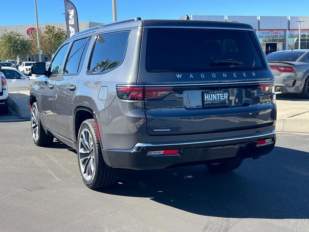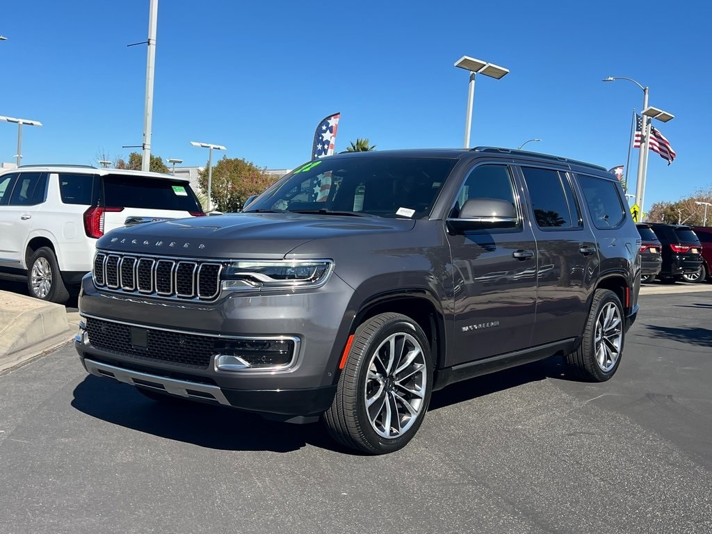 CARFAX One-Owner. Odometer is 10762 miles below market average! Baltic Gray Metallic Clearcoat 2022 Jeep Wagoneer Series III 4WD 8-Speed Automatic 5.7L V8 10 Speakers, 19 Speaker McIntosh Audio System, 3 Panel Sunroof, 3.21 Rear Axle Ratio, 3rd row seats: bench, 4-Wheel Disc Brakes, ABS brakes, Adjustable pedals, Adjustable Roof Rail Crossbars, Air Conditioning, Alloy wheels, AM/FM radio: SiriusXM with 360L, Anti-whiplash front head restraints, Audio memory, Auto High-beam Headlights, Auto-dimming door mirrors, Auto-dimming Rear-View mirror, Auto-leveling suspension, Automatic temperature control, Brake assist, Bumpers: body-color, Cargo Cover, Compass, Delay-off headlights, Driver door bin, Driver vanity mirror, Driver's Seat Mounted Armrest, Dual front impact airbags, Dual front side impact airbags, Electronic Stability Control, Exterior Parking Camera Rear, Four wheel independent suspension, Front anti-roll bar, Front Bucket Seats, Front Center Armrest w/Storage, Front dual zone A/C, Front fog lights, Front Passenger Interactive Display, Front reading lights, Fully automatic headlights, Garage door transmitter, Genuine wood console insert, Genuine wood dashboard insert, Genuine wood door panel insert, Heads-Up Display, Heated door mirrors, Heated front seats, Heated rear seats, Heated steering wheel, Illuminated entry, Knee airbag, Leather Trimmed Bucket Seats, Low tire pressure warning, Luxury Front & Rear Floor Mats, Memory seat, Navigation System, Normal Duty Suspension, Occupant sensing airbag, Outside temperature display, Overhead airbag, Overhead console, Panic alarm, Passenger door bin, Passenger seat mounted armrest, Passenger vanity mirror, Pedal memory, Power adjustable front head restraints, Power Deployable Running Boards, Power door mirrors, Power driver seat, Power Liftgate, Power passenger seat, Power steering, Power windows, Premium Group I (DISC), Quick Order Package 22N, Radio data system, Radio: Uconnect 5 Nav w/10.1" Display, Rain sensing wipers, Rear air conditioning, Rear anti-roll bar, Rear dual zone A/C, Rear reading lights, Rear seat center armrest, Rear window defroster, Rear window wiper, Reclining 3rd row seat, Remote keyless entry, Reversible Carpet/Vinyl Cargo Mat, Security system, Speed control, Speed-sensing steering, Speed-Sensitive Wipers, Split folding rear seat, Steering wheel memory, Steering wheel mounted audio controls, Tachometer, Telescoping steering wheel, Tilt steering wheel, Traction control, Trip computer, Turn signal indicator mirrors, Variably intermittent wipers, Ventilated front seats, Voltmeter, Wheels: 20" x 9.0" Premium 2 Aluminum, Wheels: 22" x 9.0" Premium 3 Aluminum (DISC).