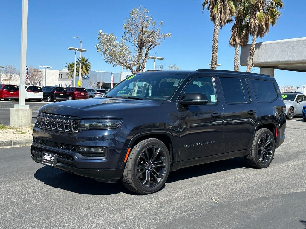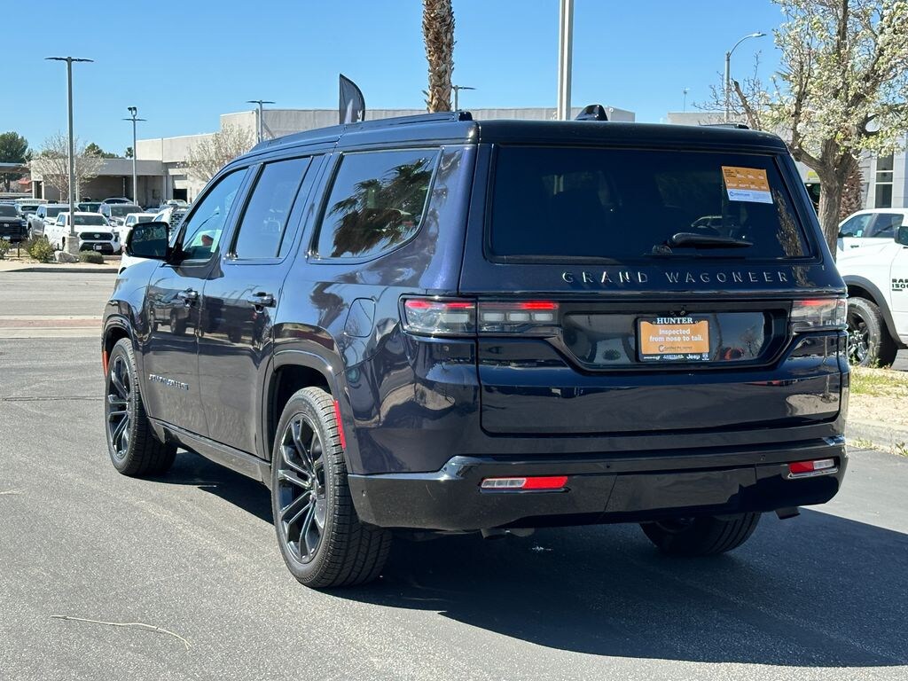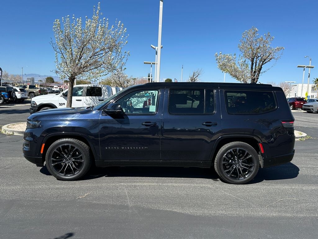CARFAX One-Owner. Midnight Sky 2024 Jeep Grand Wagoneer Series II 4WD 8-Speed Automatic 3.0L I6 19 Speakers, 23 Speaker McIntosh Reference Audio System, 3.92 Rear Axle Ratio, 3rd row seats: bench, 4-Wheel Disc Brakes, ABS brakes, Adjustable pedals, Adjustable Roof Rail Crossbars, Air Conditioning, Alloy wheels, AM/FM radio: SiriusXM with 360L, Anti-whiplash front head restraints, Apple CarPlay/Android Auto, Audio memory, Auto High-beam Headlights, Auto-dimming door mirrors, Auto-dimming Rear-View mirror, Auto-leveling suspension, Automatic temperature control, Black Roof, Brake assist, Bumpers: body-color, Cargo Cover, Compass, Delay-off headlights, Driver door bin, Driver vanity mirror, Driver's Seat Mounted Armrest, Dual front impact airbags, Dual front side impact airbags, Electronic Stability Control, Emergency communication system: Wagoneer Connect, Four wheel independent suspension, Front anti-roll bar, Front Bucket Seats, Front Center Armrest w/Storage, Front dual zone A/C, Front fog lights, Front Passenger Interactive Display, Front reading lights, Fully automatic headlights, Garage door transmitter, Genuine wood console insert, Genuine wood dashboard insert, Genuine wood door panel insert, Gloss Black Upper & Lower DLO Molding, Heads-Up Display, Heated door mirrors, Heated front seats, Heated rear seats, Heated steering wheel, Illuminated entry, Knee airbag, Leather steering wheel, Leather Trimmed Bucket Seats, Low tire pressure warning, Memory seat, Navigation System, Normal Duty Suspension, Obsidian Appearance Package, Occupant sensing airbag, Outside temperature display, Overhead airbag, Overhead console, Panic alarm, Passenger door bin, Passenger seat mounted armrest, Passenger vanity mirror, Pedal memory, Piano Black Exterior Accents, Power adjustable front head restraints, Power door mirrors, Power driver seat, Power Liftgate, Power moonroof, Power passenger seat, Power steering, Power windows, Premium Tinted Glass, Quick Order Package 28T Obsidian, Radio data system, Radio: Uconnect 5 Nav w/12.0" Display, Rain sensing wipers, Rear air conditioning, Rear anti-roll bar, Rear dual zone A/C, Rear reading lights, Rear seat center armrest, Rear window defroster, Rear window wiper, Rearview Autodim Digital Display Mirror, Reclining 3rd row seat, Remote keyless entry, Security system, Speed control, Speed-sensing steering, Speed-Sensitive Wipers, Split folding rear seat, Steering wheel memory, Steering wheel mounted audio controls, Tachometer, Telescoping steering wheel, Tilt steering wheel, Traction control, Trip computer, Turn signal indicator mirrors, Two Tone Paint Group, Variably intermittent wipers, Ventilated front seats, Ventilated Rear Seats, Voltmeter, Wheels: 22" x 9.0" Tinted Polished w/Black Insert. Clean CARFAX.