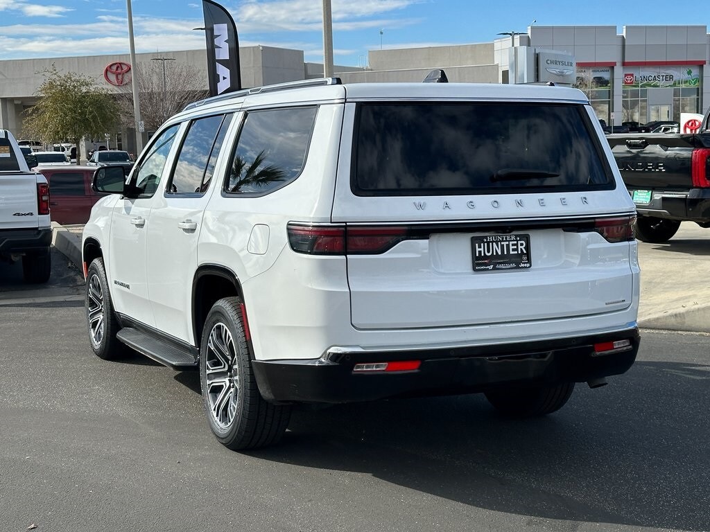 Recent Arrival! CARFAX One-Owner. Bright White Clearcoat 2024 Jeep Wagoneer Series II 4WD 8-Speed Automatic 3.0L I6 10 Speakers, 118 MPH Maximum Speed Calibration, 3.55 Rear Axle Ratio, 3rd row seats: bench, 4-Wheel Disc Brakes, ABS brakes, Adjustable pedals, Air Conditioning, Alloy wheels, AM/FM radio: SiriusXM with 360L, Anti-whiplash front head restraints, Apple CarPlay/Android Auto, Audio memory, Auto-dimming door mirrors, Auto-dimming Rear-View mirror, Auto-leveling suspension, Automatic temperature control, Brake assist, Bumpers: body-color, Compass, Delay-off headlights, Driver door bin, Driver vanity mirror, Driver's Seat Mounted Armrest, Dual front impact airbags, Dual front side impact airbags, Electronic Stability Control, Emergency communication system: Wagoneer Connect, Exterior Parking Camera Rear, Four wheel independent suspension, Front anti-roll bar, Front Bucket Seats, Front Center Armrest w/Storage, Front dual zone A/C, Front fog lights, Front reading lights, Fully automatic headlights, Garage door transmitter, Genuine wood console insert, Genuine wood dashboard insert, Genuine wood door panel insert, Heated door mirrors, Heated front seats, Heated rear seats, Heated steering wheel, Illuminated entry, Knee airbag, Leather Trimmed Bucket Seats, Low tire pressure warning, Memory seat, Navigation System, Normal Duty Suspension, Occupant sensing airbag, Outside temperature display, Overhead airbag, Overhead console, Panic alarm, Passenger door bin, Passenger seat mounted armrest, Passenger vanity mirror, Pedal memory, Power adjustable front head restraints, Power door mirrors, Power driver seat, Power Liftgate, Power passenger seat, Power steering, Power windows, Quick Order Package 25J, Radio data system, Radio: Uconnect 5 Nav w/10.1" Display, Rain sensing wipers, Rear air conditioning, Rear anti-roll bar, Rear dual zone A/C, Rear reading lights, Rear seat center armrest, Rear window defroster, Rear window wiper, Reclining 3rd row seat, Remote keyless entry, Security system, Speed control, Speed-sensing steering, Speed-Sensitive Wipers, Split folding rear seat, Steering wheel memory, Steering wheel mounted audio controls, Tachometer, Telescoping steering wheel, Tilt steering wheel, Traction control, Trip computer, Turn signal indicator mirrors, Variably intermittent wipers, Ventilated front seats, Voltmeter, Wheels: 20" x 9.0" Premium 2 Aluminum. Clean CARFAX.