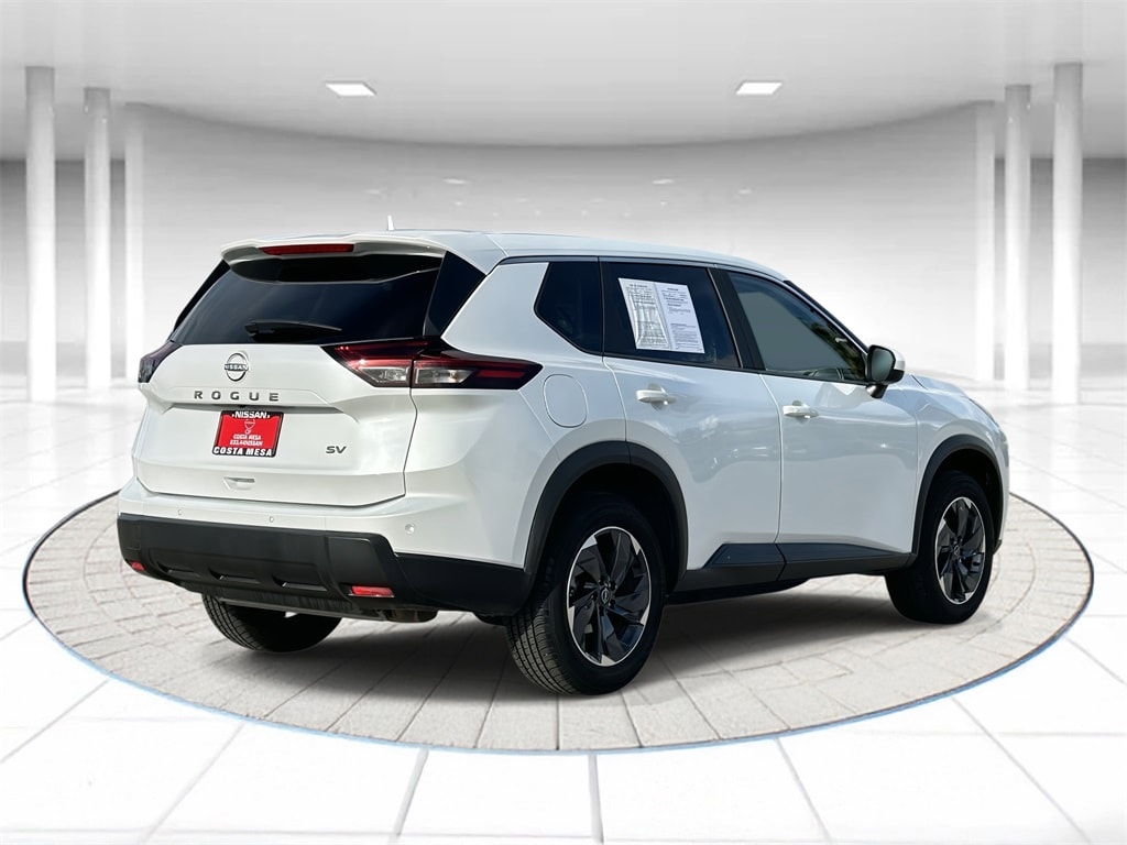 This is a 2024 Rogue in White Pearl with Charcoal interior. 30/37 City/Highway MPG