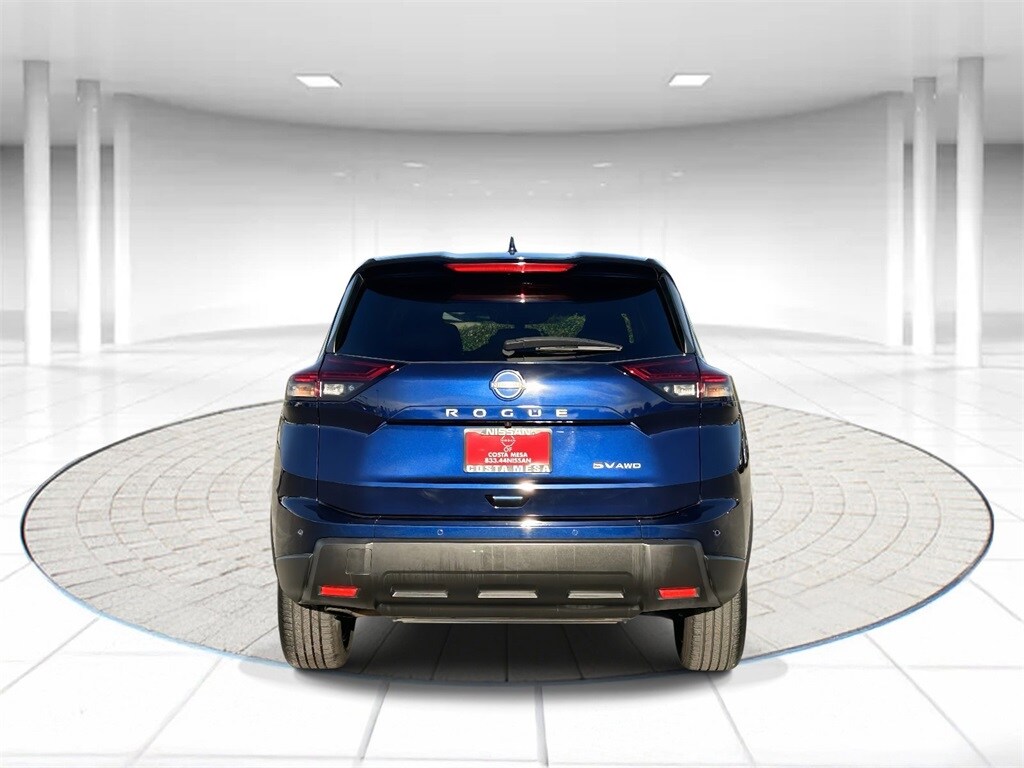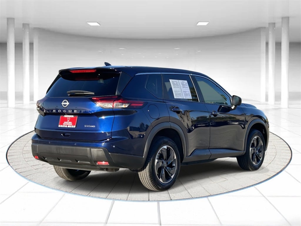 This is a 2024 Rogue in Deep Ocean Blue with Charcoal interior. 28/35 City/Highway MPG