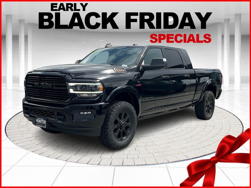 CARFAX One-Owner. Priced below KBB Fair Purchase Price! Odometer is 6118 miles below market average! Diamond Black Crystal Pearlcoat 2021 Ram 2500 Laramie 4WD 6-Speed Automatic Cummins 6.7L I6 Turbodiesel #1 Seat Foam Cushion, 1-Year SiriusXM Guardian Trial, 10 Speakers, 115V Auxiliary Rear Power Outlet, 17 Speaker harman kardon Premium Sound, 2 Way Rear Headrest Seat, 220 Amp Alternator, 3.73 Axle Ratio, 4 Way Front Headrests, 4-Wheel Disc Brakes, 4G LTE Wi-Fi Hot Spot, 5-Year SiriusXM Traffic Service, 5-Year SiriusXM Travel Link Service, 8.4" Touchscreen Display, ABS brakes, Active Noise Control System, Adjustable pedals, Air Conditioning, Air Suspension Decal, Alloy wheels, AM/FM radio: SiriusXM, Apple CarPlay, Apple CarPlay/Android Auto, Auto High Beam Headlamp Control, Auto Level Rear Air Suspension, Auto-dimming Rear-View mirror, Automatic temperature control, Bed Utility Group, Black Exterior Mirrors, Black Exterior Truck Badging, Black Headlamp Bezels, Black Interior Accents, Black RAM Head Tailgate Badge, Black Tail Lamp Bezels, Black Wheel Center Hub, Blind Spot & Cross Path Detection (DISC), Body Color Door Handles, Body Color Grille Surround, Brake assist, Bumpers: chrome, Center Hub, Compass, Delay-off headlights, Disassociated Touchscreen Display, Driver door bin, Driver vanity mirror, Dual front impact airbags, Dual front side impact airbags, Electronic Stability Control, Electronically Controlled Throttle, Exterior Mirrors w/Memory, Foam Bottle Insert (Door Trim Panel), For Details Visit DriveUconnect.com, Front anti-roll bar, Front Center Armrest w/Storage, Front dual zone A/C, Front fog lights, Front License Plate Bracket, Front reading lights, Front Seat Back Map Pockets, Fully automatic headlights, Garage door transmitter, Gloss Black Grille Billets/Accents, Google Android Auto, GPS Antenna Input, GPS Navigation, HD Radio, Heated door mirrors, Heated Front Seats, Heated front seats, Heated Second Row Seats, Heated Steering Wheel, Heated steering wheel, High Back Seats, Illuminated entry, Integrated Center Stack Radio, Integrated Voice Command w/Bluetooth, Laramie Level B Equipment Group, Leather steering wheel, Leather Trim 40/20/40 Bench Seat, LED Bed Lighting, Low tire pressure warning, Manufacturer's Statement of Origin, Mirror-Mounted Aux Reverse Lamps, MOPAR Deployable Bed Step, MOPAR Spray In Bedliner, Night Edition, Occupant sensing airbag, Off-Road Information Pages, Outside temperature display, Overhead airbag, Overhead console, Painted Front Bumper, Painted Rear Bumper, Panic alarm, ParkView Rear Back-Up Camera, Passenger door bin, Passenger vanity mirror, Power 2-Way Driver Lumbar Adjust, Power 2-Way Passenger Lumbar Adjust, Power Adjust 8-Way Driver Seat, Power Adjust 8-Way Front Passenger Seat, Power Adjustable Convex Aux Mirrors, Power Adjustable Pedals w/Memory, Power Deployable Running Boards, Power door mirrors, Power driver seat, Power passenger seat, Power steering, Power windows, Pwr Convenience Chrome Tow Mirrors w/Spotter & Memory, Quick Order Package 2HH Laramie, Radio data system, Radio: Uconnect 4 w/8.4" Display, Radio: Uconnect 4C Nav w/8.4" Display, Radio/Driver Seat/Mirrors/Pedals Memory, Rain Sensitive Windshield Wipers, Rear 60/40 Folding Seat, Rear anti-roll bar, Rear reading lights, Rear seat center armrest, Rear step bumper, Rear window defroster, Remote keyless entry, Remote Tailgate Release, Security system, Selectable Tire Fill Alert, SiriusXM Satellite Radio, SiriusXM Traffic Plus, SiriusXM Travel Link, Speed control, Split folding rear seat, Steering wheel mounted audio controls, Tachometer, Tilt steering wheel, Tip Start, Tow Hooks, Traction control, Trip computer, Turn signal indicator mirrors, Variably intermittent wipers, Vendor Painted Cargo Box Tracking, Ventilated Front Seats, Voltmeter, Wheels: 18" x 8.0" Polished Aluminum, Wheels: 20" x 8.0" Black Painted Aluminum. Clean CARFAX.