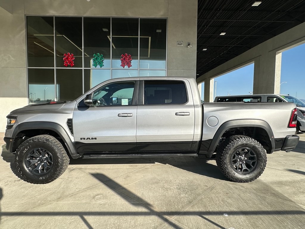 Billet Silver Metallic Clearcoat 2022 Ram 1500 TRX 4WD 8-Speed Automatic 6.2L Supercharged HEMI V8 SRT #2 Seat Foam Cushion, 10 Speakers, 2-Door Passive Entry, Front Door Locks, 3.55 Rear Axle Ratio, 4 Way Front Headrests, 4-Wheel Disc Brakes, ABS brakes, Adaptive Cruise Control w/Stop & Go, Adaptive suspension, Advanced Safety Group, Air Conditioning, Alloy wheels, AM/FM radio: SiriusXM with 360L, Apple CarPlay/Android Auto, Auto High-beam Headlights, Auto-dimming door mirrors, Auto-dimming Rear-View mirror, Automatic temperature control, Bed Utility Group, Black Exterior Mirrors, Blind Spot & Cross Path Detection, Body Color Door Handles, Brake assist, Bucket Seats, Center Console Parts Module, Cloth/Vinyl Bucket Seats, Compass, Delay-off headlights, Digital Rearview Mirror, Driver door bin, Driver Seat Memory, Driver/Passenger Wrapped Assist Handles, Dual front impact airbags, Dual front side impact airbags, Electronic Stability Control, Exterior Mirrors Courtesy Lamps, Exterior Mirrors w/Heating Element, Exterior Mirrors w/Memory, Exterior Mirrors w/Supplemental Signals, Front anti-roll bar, Front Bucket Seats, Front Center Armrest w/Storage, Front Door Accent Lighting, Front dual zone A/C, Front fog lights, Front reading lights, Front Seat Back Map Pockets, Front wheel independent suspension, Full Length Premium Upgraded Floor Console, Fully automatic headlights, harman/kardon 19 Speaker Premium Sound, Heads-Up Display, Heated door mirrors, Heated Front Seats, Heated Second Row Seats, Heated Steering Wheel, Illuminated entry, IP LED Ambient Light Pipe, Lane Keep Assist, Leather Shift Knob, Leather steering wheel, Leather Trimmed Bucket Seats, Leather/Carbon Flat-Bottom Steering Wheel, Leather/Suede Flat-Bottom Steering Wheel, LED CHMSL Lamp, Low tire pressure warning, Luxury Front Door Trim Panel, MOPAR 4 Adjustable Cargo Tie-Down Hooks, MOPAR Bright Pedal Kit, MOPAR Deployable Bed Step, MOPAR Rock Rails, MOPAR Spray In Bedliner, MOPAR TRX Hood Graphics, Navigation System, Occupant sensing airbag, Outside temperature display, Overhead airbag, Overhead console, Panic alarm, ParkSense Front/Rear Park Assist w/Stop, ParkView Rear Back-Up Camera, Passenger door bin, Passenger vanity mirror, Pedestrian Emergency Braking, Pick-Up Box Lighting, Power 4-Way Driver Lumbar Adjust, Power 4-Way Passenger Lumbar Adjust, Power 8-Way Driver & Passenger Seats, Power Adjustable Pedals w/Memory, Power door mirrors, Power driver seat, Power steering, Power windows, Power-Folding Mirrors, Premium Wrapped IP Bezel, Quick Order Package 29Y, Radio data system, Radio: Uconnect 5 Nav w/12.0" Display, Radio/Driver Seat/Mirrors/Pedals Memory, Rain Sensitive Windshield Wipers, Real Carbon Fiber Interior Accents, Rear 60/40 Folding Seat, Rear 60/40 Folding Split Recline Seat, Rear Door Accent Lighting, Rear seat center armrest, Rear step bumper, Rear Underseat Compartment Storage, Rear Window Defroster, Remote keyless entry, Remote Tailgate Release, Security system, Speed control, Split folding rear seat, Sport steering wheel, Steering wheel mounted audio controls, Sun Visors w/Illuminated Vanity Mirrors, Surround View Camera System, Tachometer, Tailgate Ajar Warning Lamp, Technology Group (DISC), Telescoping steering wheel, Tilt steering wheel, Traction control, Trailer Brake Control, Trailer Light Check, Trailer Reverse Steering Control, Trailer Tire Pressure Monitoring System, Trailer Tow Group, Tri-Fold Tonneau Cover, Trip computer, TRX Carbon Fiber Package, TRX Level 2 Equipment Group, TRX Red Interior Accents, Turn signal indicator mirrors, Universal Garage Door Opener, Variably intermittent wipers, Ventilated Front Seats, Ventilated Rear Seats, Voltmeter, Wheels: 18" x 9" Black Paint/Polish Aluminum, Wireless Charging Pad.