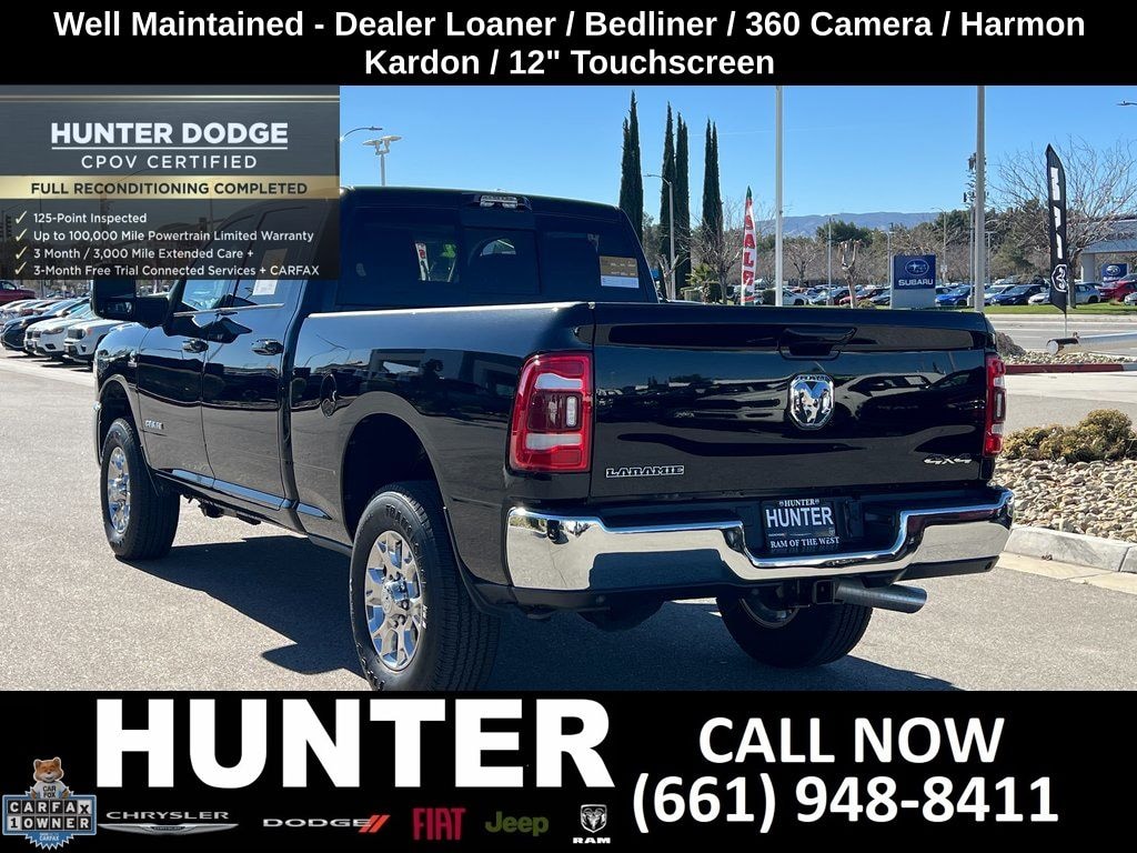 CARFAX One-Owner. Priced below KBB Fair Purchase Price! Odometer is 21932 miles below market average! Diamond Black 2024 Ram 3500 Laramie 4WD 6-Speed Automatic Cummins 6.7L I6 Turbodiesel FCA US LLC Certified Pre-Owned Certified, 10 Speakers, 115V Auxiliary Rear Power Outlet, 12" Touchscreen Display, 17 Speaker harman/kardon Premium Sound, 18" x 8" Polished Aluminum Wheels, 2 Way Rear Headrest Seat, 220 Amp Alternator, 2nd Row In Floor Storage Bins, 3.73 Axle Ratio, 4 Way Front Headrests, 4-Wheel Disc Brakes, 4G LTE Wi-Fi Hot Spot, 5th Wheel/Gooseneck Towing Prep Group, 8.4" Touchscreen Display, ABS brakes, Active Noise Control System, Adaptive Cruise Control w/Stop, Adaptive Steering System, Air Conditioning, Alexa Built-In, Alloy wheels, AM/FM radio: SiriusXM with 360L, Apple CarPlay, Apple CarPlay/Android Auto, Auto Adjust In Reverse Exterior Mirrors, Auto Dimming Exterior Passenger Mirror, Auto High Beam Headlamp Control, Auto Power-Folding Mirrors, Auto-Dimming Exterior Mirrors, Auto-dimming Rear-View mirror, Automatic temperature control, Bed Utility Group, Blind Spot & Cross Path Detection, Brake assist, Bright Front Bumper, Bright Rear Bumper, Bumpers: body-color, Center Hub, Chrome Bumper Package, Chrome Exterior Mirrors, Cluster 12" TFT Color Display, Compass, Connected Travel & Traffic Services, Connectivity - US/Canada, CTR Stop Lamp w/Cargo View Camera, Dash Pass Thru Wire Circuits, Delay-off headlights, Disassociated Touchscreen Display, Driver door bin, Driver vanity mirror, Dual front impact airbags, Dual front side impact airbags, Electronic Stability Control, Electronically Controlled Throttle, Exterior Mirrors Courtesy Lamps, Exterior Mirrors w/Heating Element, Exterior Mirrors w/Memory, Exterior Mirrors w/Supplemental Signals, Foam Bottle Insert (Door Trim Panel), Folding Flat Load Floor Storage, For Details Visit DriveUconnect.com, For More Info, Call 800-643-2112, Forward & Reverse Utility Lights, Front anti-roll bar, Front Center Armrest w/Storage, Front dual zone A/C, Front LED Fog Lamps, Front License Plate Bracket, Front reading lights, Front Seat Back Map Pockets, Full Speed Forward Collision Warning Plus, Fully automatic headlights, Garage door transmitter, Global Telematics Box Module (TBM), Google Android Auto, GPS Antenna Input, GPS Navigation, HD Radio, Heated door mirrors, Heated Front Seats, Heated front seats, Heated Second Row Seats, Heated Steering Wheel, Heated steering wheel, High Back Seats, I/P Mounted Auxiliary Switches, Illuminated entry, Integrated Center Stack Radio, Integrated Voice Command w/Bluetooth, Lane Keep Assist, Laramie Level B Equipment Group, Leather steering wheel, Leather Trim 40/20/40 Bench Seat, LED Bed Lighting, LED Reflector Headlamps, LED Tail Lamps, Low tire pressure warning, Manufacturer's Statement of Origin, Mirror Running Lights, MOPAR Deployable Bed Step, MOPAR Front & Rear Rubber Floor Mats, MOPAR Spray In Bedliner, Navigation System, Occupant sensing airbag, Off-Road Information Pages, Outside temperature display, Overhead airbag, Overhead console, Panic alarm, ParkSense Front/Rear Park Assist System, ParkView Rear Back-Up Camera, Passenger door bin, Passenger vanity mirror, Power 8-Way Adjustable Passenger Seat, Power Adjust 8-Way Driver Seat, Power Adjust Mirrors, Power