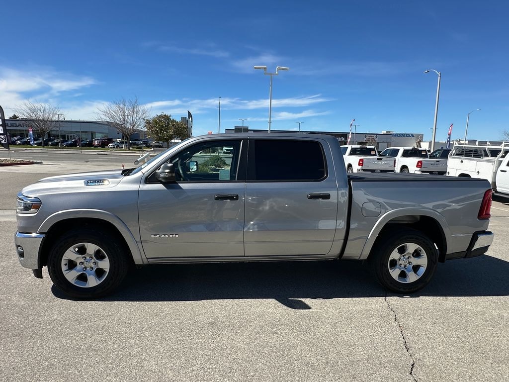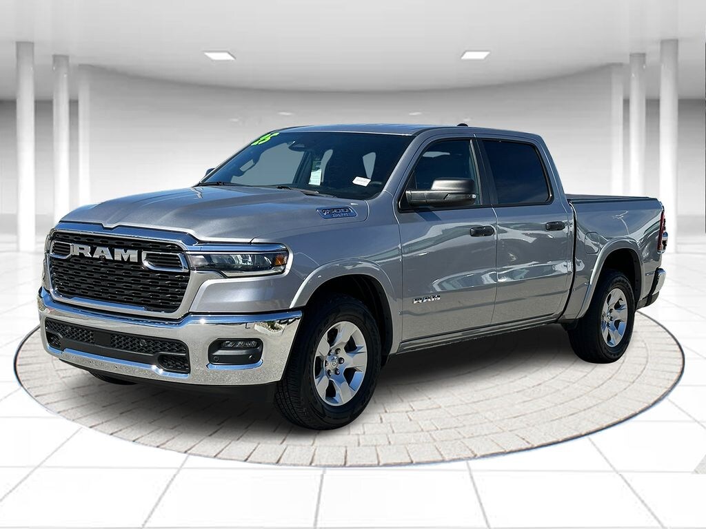 CARFAX One-Owner. Billet Silver Metallic Clearcoat 2025 Ram 1500 Big Horn/Lone Star RWD 8-Speed Automatic 3.6L V6 24V VVT 115V Auxiliary Power Outlet, 2nd Row In Floor Storage Bins, 3 Rear Seat Head Restraints, 3.21 Rear Axle Ratio, 4 Way Front Headrests, 4-Wheel Disc Brakes, 400W Inverter, 4G LTE Wi-Fi Hot Spot, 6 Speakers, ABS brakes, Air Conditioning, Alloy wheels, AM/FM radio, Apple CarPlay, Apple CarPlay/Android Auto, Auto High-beam Headlights, Auto Power-Folding Mirrors, Auto-Dimming Exterior Driver Mirror, Auto-Dimming Rear-View Mirror, Big Horn Level 1 Equipment Group, Black Exterior Mirrors, Black Premium Power Mirrors, Brake assist, Bumpers: chrome, Cloth Bench Seat, Compass, Connectivity - US/Canada, Convex Wide-Angle Exterior Mirror Insert, Delay-off headlights, Driver door bin, Dual front impact airbags, Dual front side impact airbags, Electronic Stability Control, Exterior Mirrors Courtesy Lamps, Exterior Mirrors w/Heating Element, Exterior Mirrors w/Supplemental Signals, Exterior Parking Camera Rear, Front anti-roll bar, Front Center Armrest w/Storage, Front fog lights, Front License Plate Bracket, Front reading lights, Front Seat Back Map Pockets, Front wheel independent suspension, Fully automatic headlights, Glove Box Lamp, Google Android Auto, GPS Antenna Input, Heated door mirrors, Heated Front Seats, Heated Steering Wheel, Illuminated entry, Leather Wrapped Steering Wheel, Low tire pressure warning, Manual Adjust 4-Way Front Passenger Seat, Manual Folding Exterior Mirrors, Manufacturer's Statement of Origin, MOPAR Front & Rear Rubber Floor Mats, Occupant sensing airbag, Outside temperature display, Overhead airbag, Overhead console, Panic alarm, Passenger door bin, Passenger vanity mirror, Power 2-Way Driver Lumbar Adjust, Power Adjust 8-Way Driver Seat, Power Adjustable Pedals, Power door mirrors, Power steering, Power windows, Quick Order Package 23Z Big Horn, Radio data system, Radio: Uconnect 5 W w/8.4" Display, RAM Grille Badge - Chrome, Rear 60/40 Folding Seat, Rear anti-roll bar, Rear Center Armrest, Rear Power Sliding Window, Rear seat center armrest, Rear step bumper, Rear Window Defroster, Remote keyless entry, Speed control, Split folding rear seat, Steering Wheel Mounted Audio Controls, Sun Visors w/Illuminated Vanity Mirrors, Supplier Part Tracking (J-1), Tachometer, Telescoping steering wheel, Tilt steering wheel, Traction control, Trip computer, Universal Garage Door Opener, USB Host Flip, Variably intermittent wipers, Voltmeter, Wheels: 18" x 8" Cast-Aluminum Painted.
