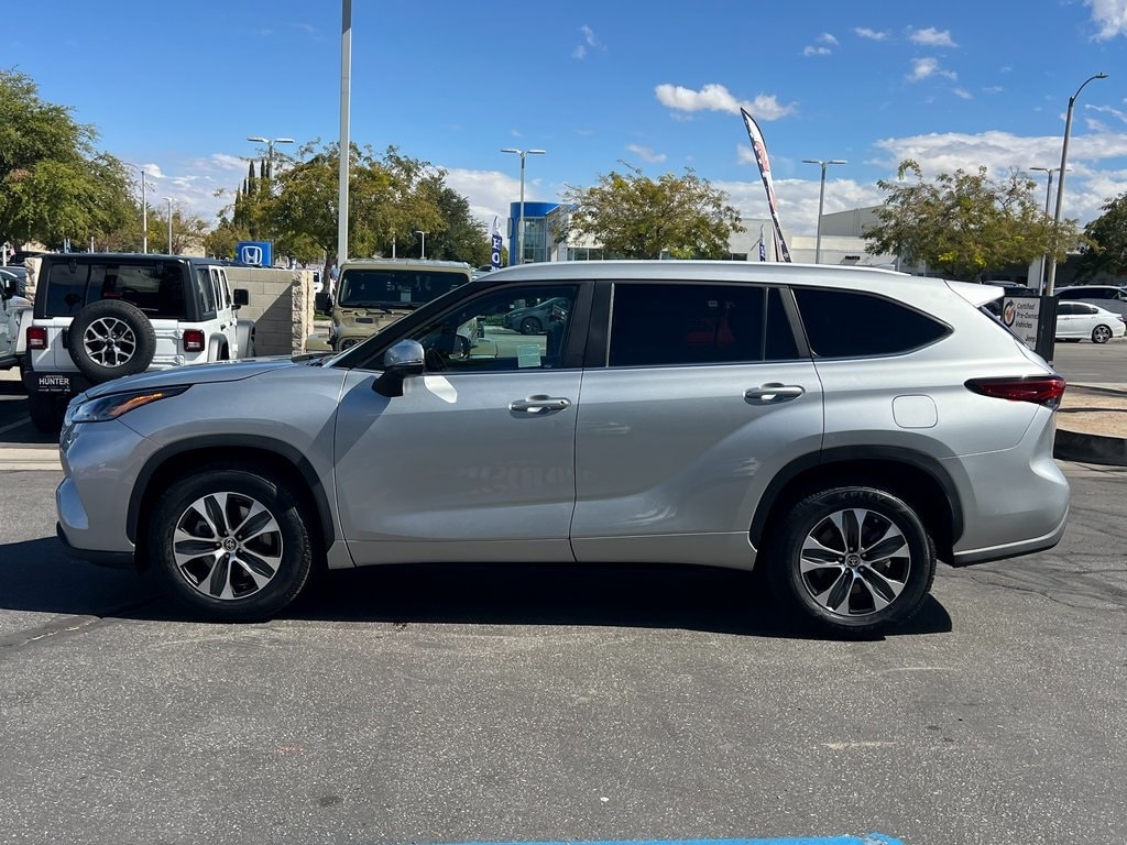 CARFAX One-Owner. 22/29 City/Highway MPG Celestial Silver 2023 Toyota Highlander XLE FWD 8-Speed Automatic 2.4L I4 PDI Turbocharged DOHC 16V LEV3-SULEV30 265hp 3.329 Axle Ratio, 3rd row seats: split-bench, 4-Wheel Disc Brakes, 6 Speakers, ABS brakes, Air Conditioning, Alloy wheels, AM/FM radio: SiriusXM, Apple CarPlay/Android Auto, Auto High-beam Headlights, Auto-dimming Rear-View mirror, Automatic temperature control, Brake assist, Bumpers: body-color, Delay-off headlights, Driver door bin, Driver vanity mirror, Dual front impact airbags, Dual front side impact airbags, Electronic Stability Control, Emergency communication system: Safety Connect (up to 10-year trial subscription), Exterior Parking Camera Rear, Four wheel independent suspension, Front anti-roll bar, Front Bucket Seats, Front Center Armrest, Front dual zone A/C, Front fog lights, Front reading lights, Fully automatic headlights, Garage door transmitter: HomeLink, Heated door mirrors, Heated Front Bucket Seats, Heated front seats, Illuminated entry, Knee airbag, Leather Shift Knob, Leather steering wheel, Low tire pressure warning, Occupant sensing airbag, Outside temperature display, Overhead airbag, Overhead console, Panic alarm, Passenger door bin, Passenger vanity mirror, Power door mirrors, Power driver seat, Power Liftgate, Power moonroof, Power passenger seat, Power steering, Power windows, Radio: 8" Toyota Audio Multimedia, Rear air conditioning, Rear anti-roll bar, Rear reading lights, Rear window defroster, Rear window wiper, Reclining 3rd row seat, Remote keyless entry, Roof rack: rails only, Security system, SofTex Seat Trim, Speed control, Speed-sensing steering, Split folding rear seat, Spoiler, Steering wheel mounted audio controls, Tachometer, Telescoping steering wheel, Tilt steering wheel, Traction control, Trip computer, Turn signal indicator mirrors, Variably intermittent wipers, Wheels: 18" Machined-Finish Alloy. Clean CARFAX.